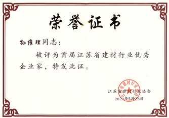 • 董事長孫維理榮獲“2021年江蘇省建材行業優秀企業家”榮譽證書